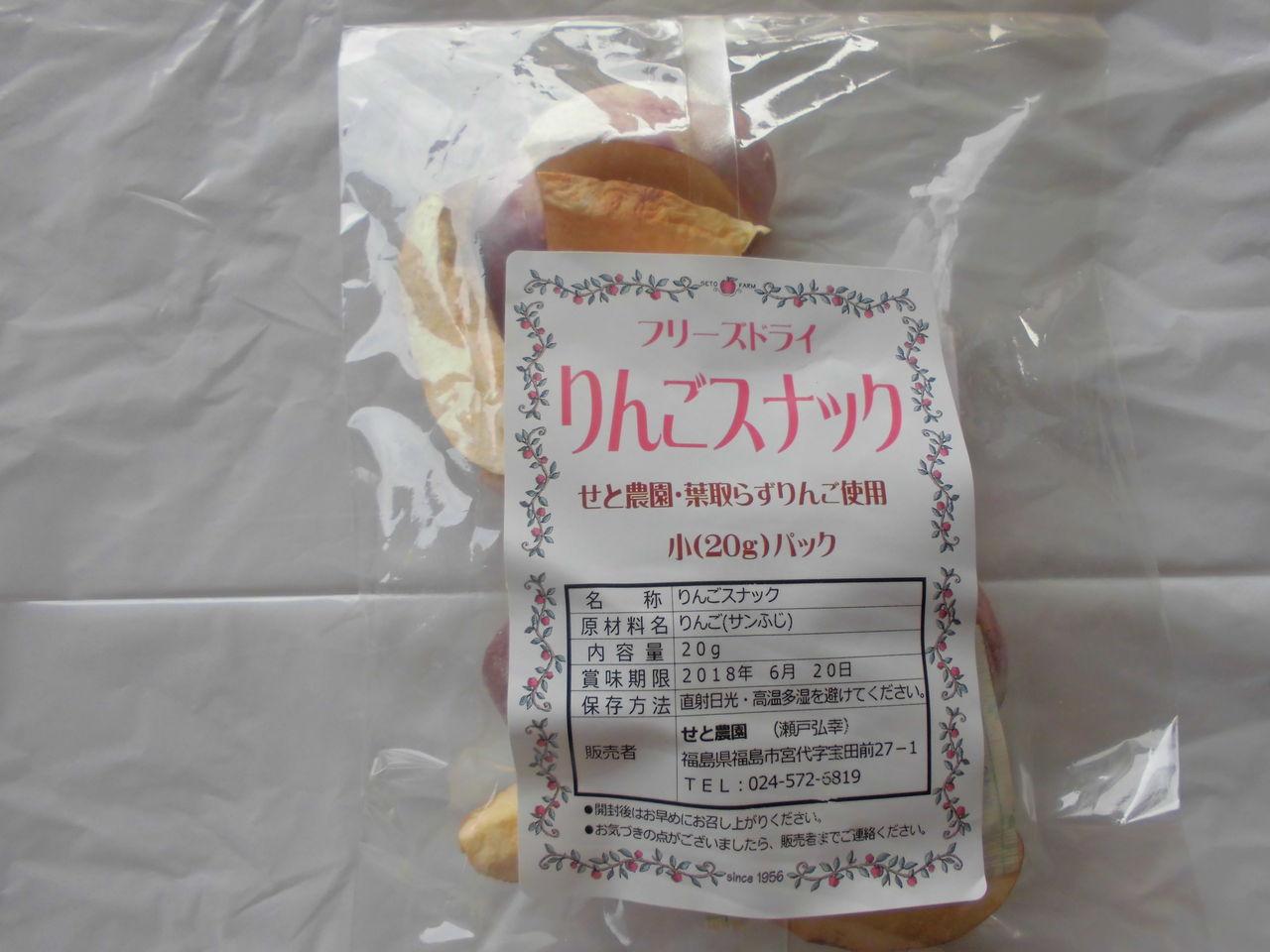 凍結乾燥りんごのりんごスナックも大幅に値下げします。こちらは20グラムの袋で300円です。送料込で2袋で600円です。